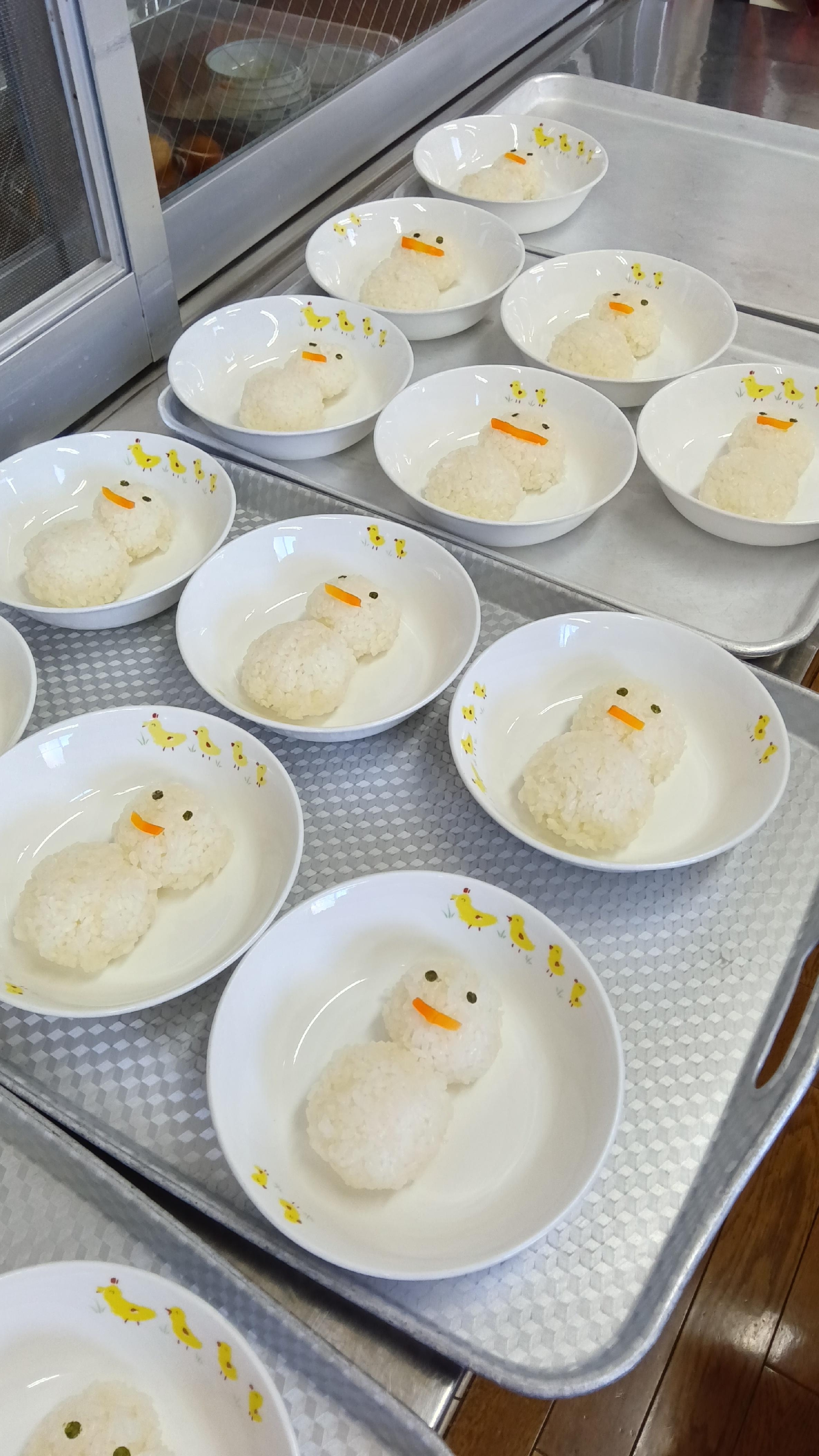 ごはんで作った雪だるまが。。