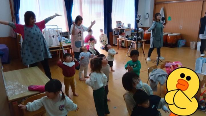 年長さんの遊戯に合わせて、小さなクラスのお友達もまねっこ🤭