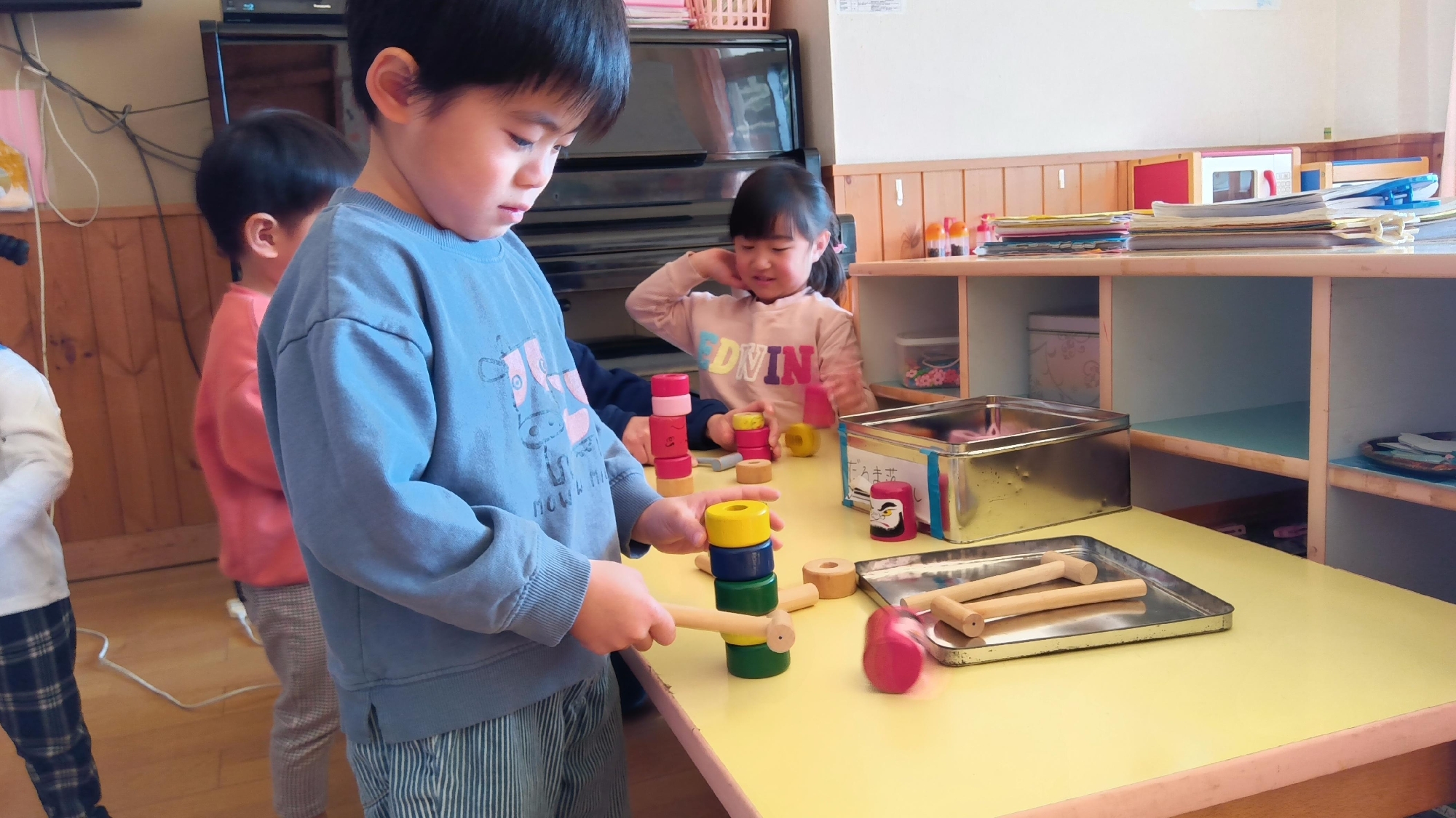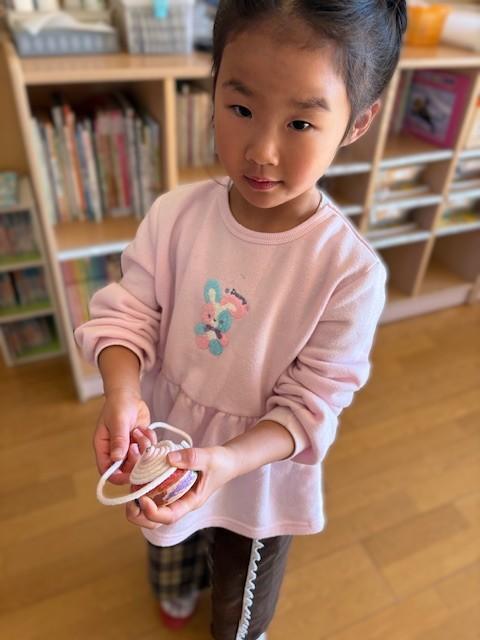 4.5歳児はレベルアップして鉄芯こまを使います。