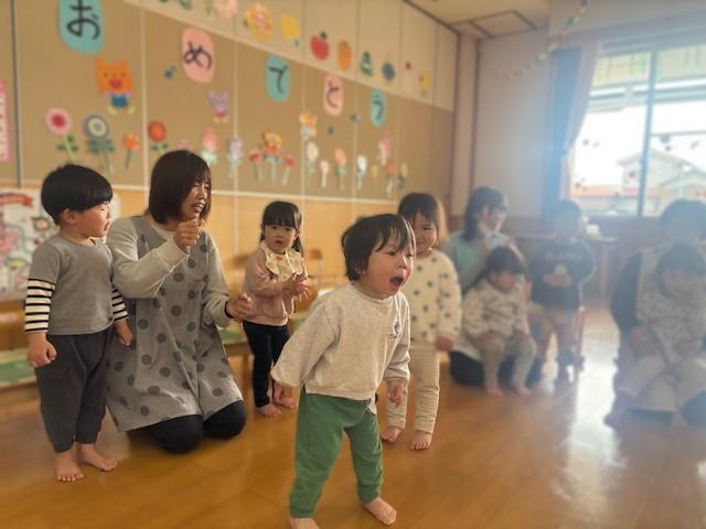 乳児クラスのお友達みんなで「バスごっこ」の歌を披露♪