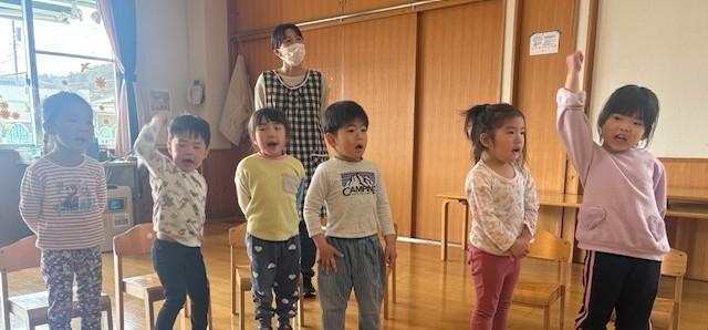 3.4歳児クラスいっしょに「勇気100%」の歌を披露♪